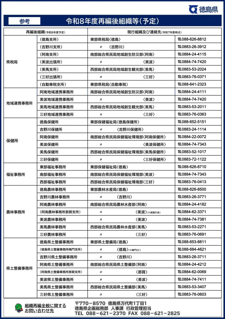 | 東部県土整備局<徳島> | 徳島県土整備事務所 |